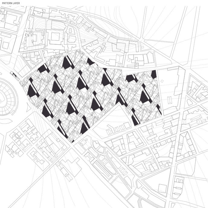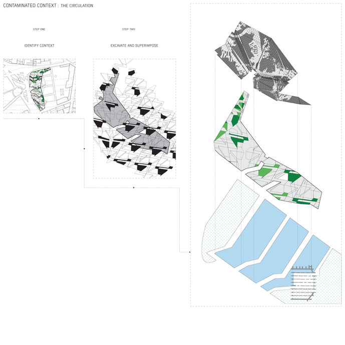 Throughout history, Rome has revealed it's complexity in the layers of time. This project is an excavation of these layers. The ruins are studied and the geometries are then extracted. These extractions inform new pathways, site lines, boundaries, and development connections. All these geometries are then compressed to create the plan and form of a new pavilion.